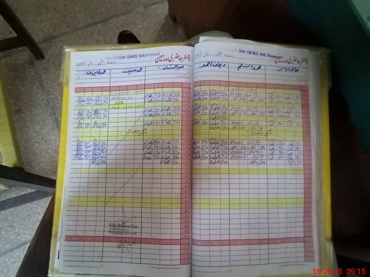 | CNIC | Full Name | Designation | R/C | Absence During Last Calender Month |