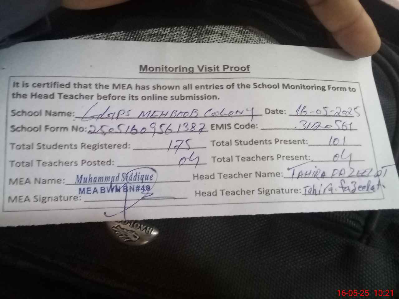 | EMIS Code: 31120561 | Name of School: GGPS MEHBOOB COLONY | |||