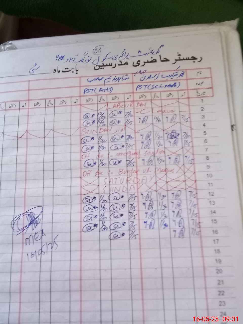 | Name: MSH**** AR**** Designation: (School Headmaster's/Headmistress's) PST Phone/Cell Number: 03**** |