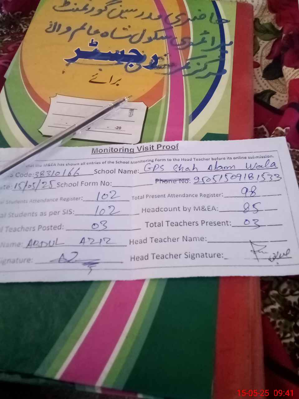 | EMIS Code: 38310166 | Name of School: GPS SHAH ALAM WALA | |||
