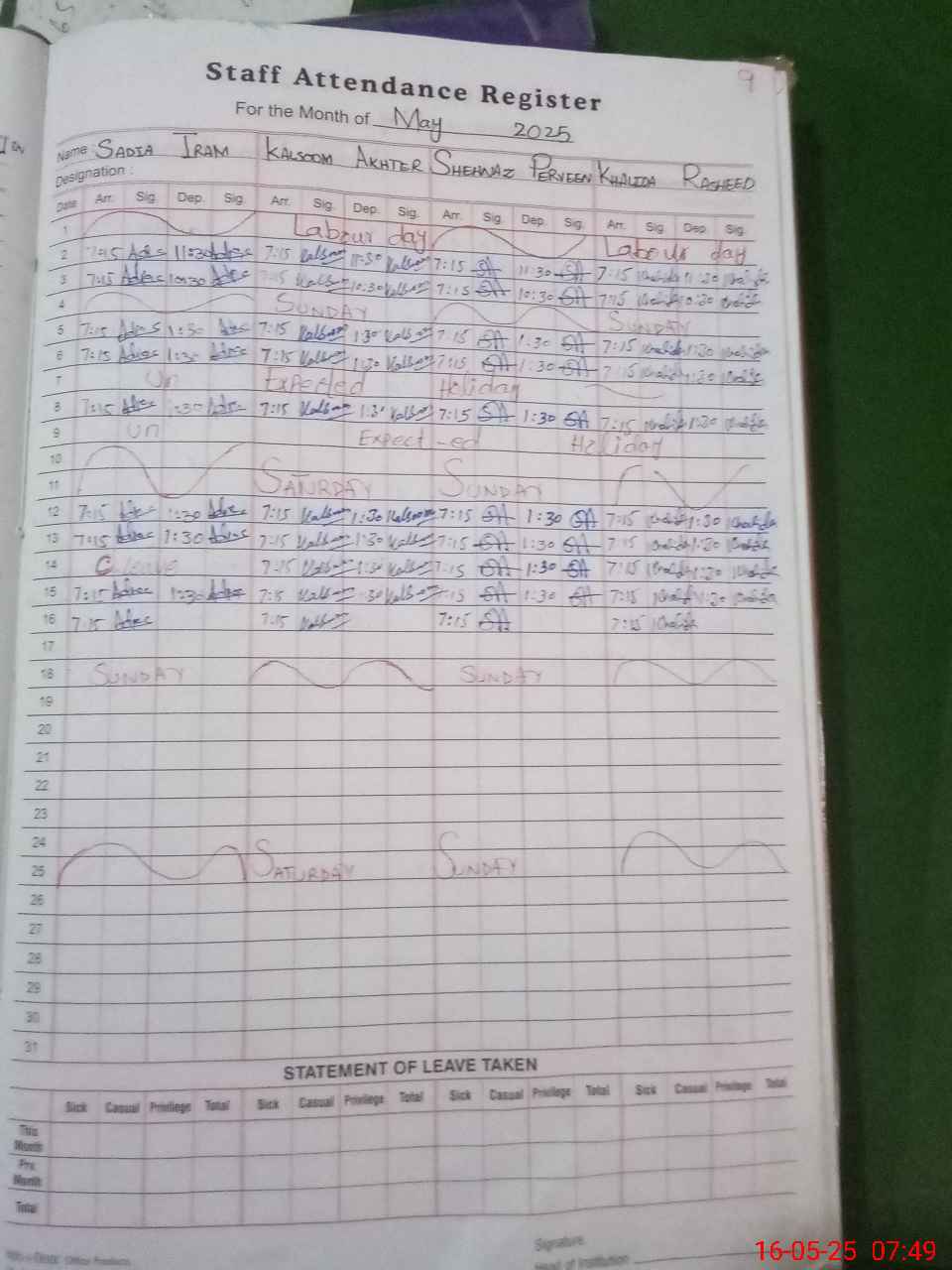 | 31**** | Sh**** Ma**** | NAIB QASID | 0 | 0 | 30 | 0 | 0 | 0 | 0 | 0 | 0 | Absent (Un-Authorized) | |