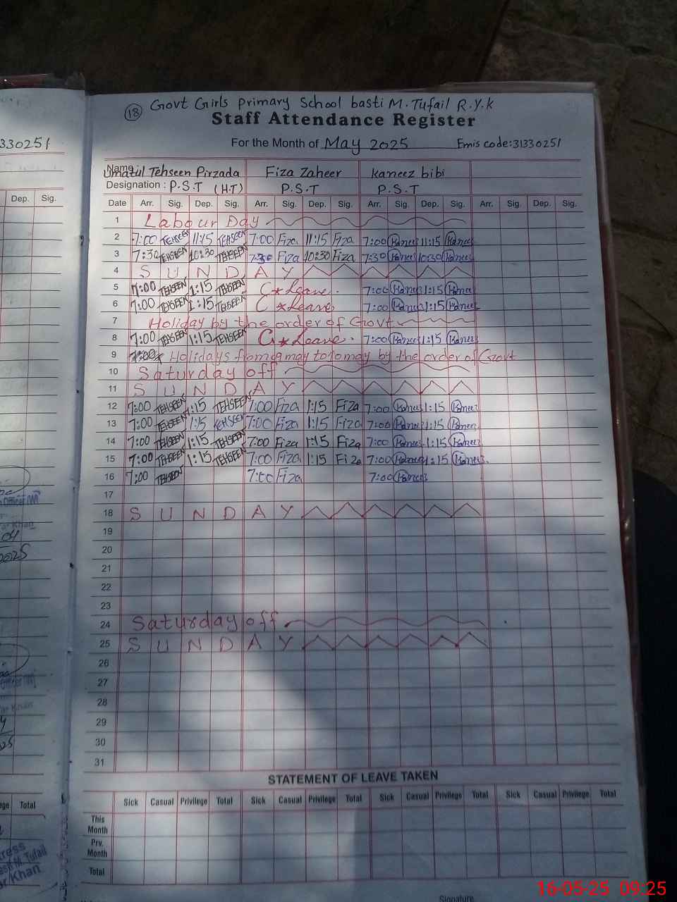 | EMIS Code: 31330251 | Name of School: GGPS BASTI MUHAMMAD TUFAIL | |||