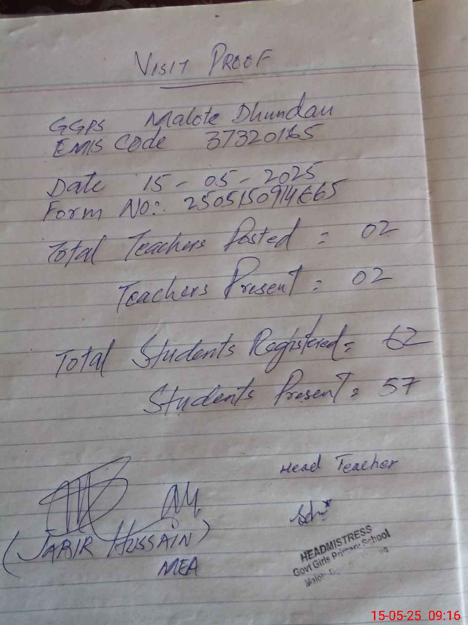| EMIS Code: 37320165 | Name of School: GGPS MALOTE DHUNDAN | |||