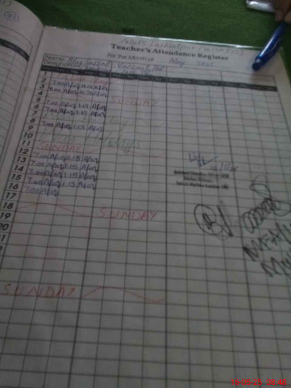 | Attendance Register | Head Teacher | MEA with School | Visit Proof |