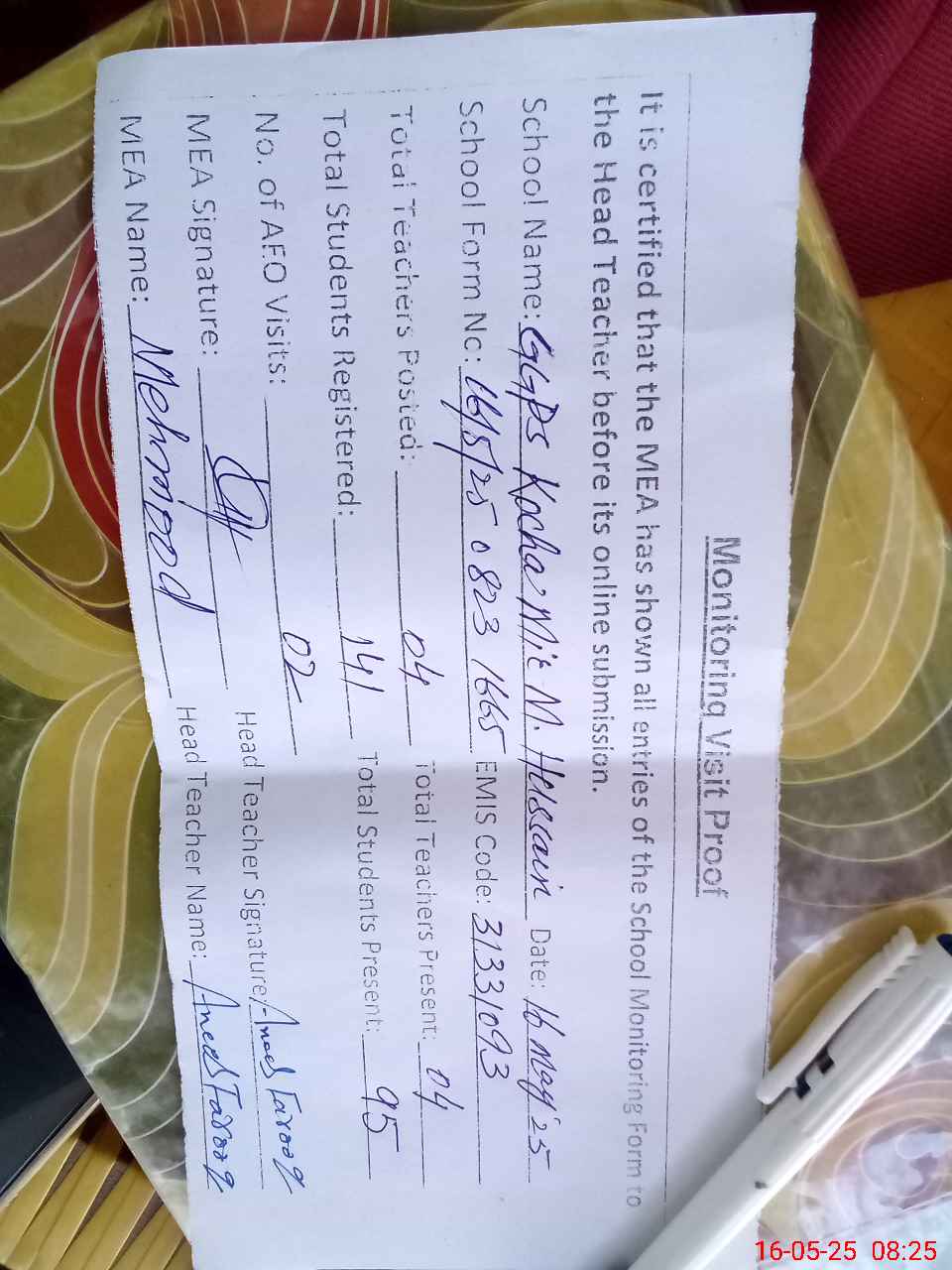 | EMIS Code: 31331093 | Name of School: GGPS MC KOCHA MIR MUHAMMAD HUSSAIN | |||