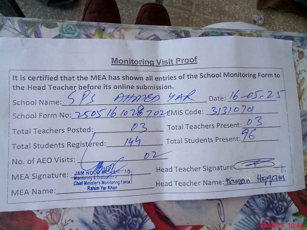 | EMIS Code: 31310701 | Name of School: GPS AHMAD YAR | |||