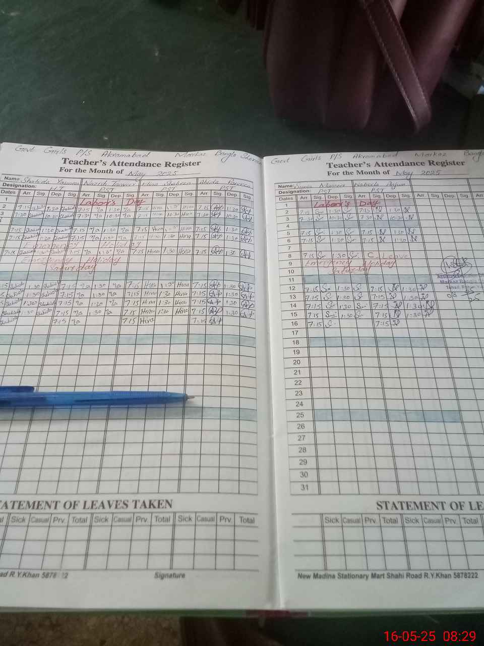 | Leave | Duty | Absent | Maternity | Medical | Ex- Pak |