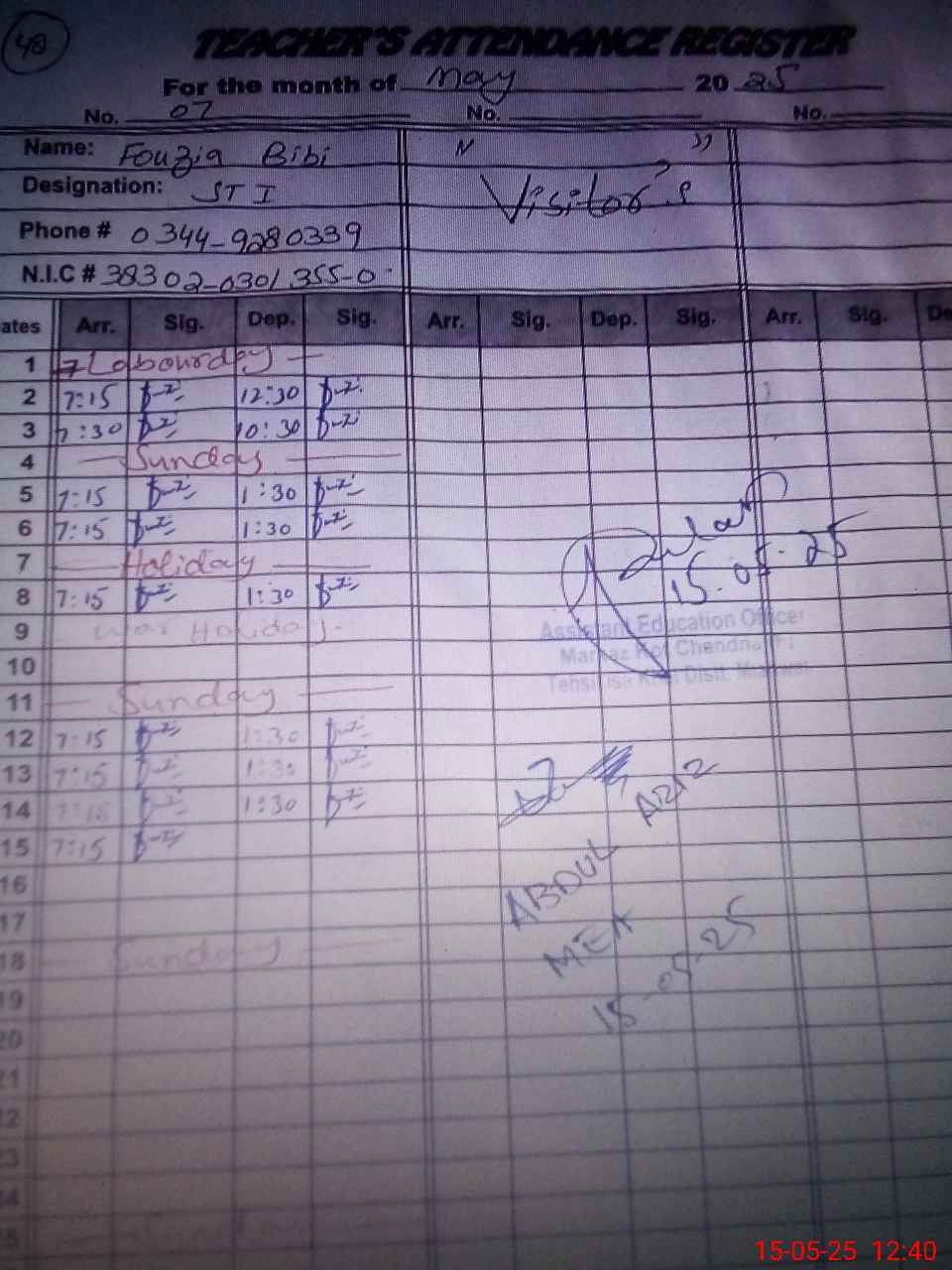 | Name: Um**** Designation: (School Headmaster's/Headmistress's) Sse Nath Phone/Cell Number: 03**** |