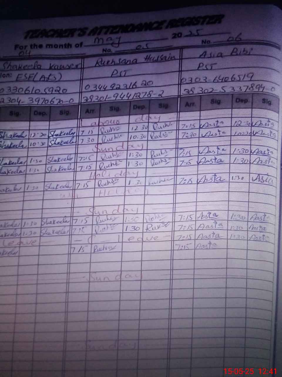 | CNIC | Full Name | Designation | R/C | Absence During Last Calender Month |