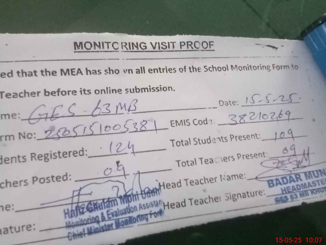 | EMIS Code: 38210269 | Name of School: GES CHAK NO 63 MB | |||