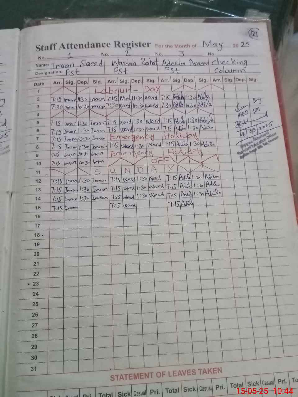 | Name of AEO: | AEO Contact No.: | MEA Phone#: 03**** | ||
