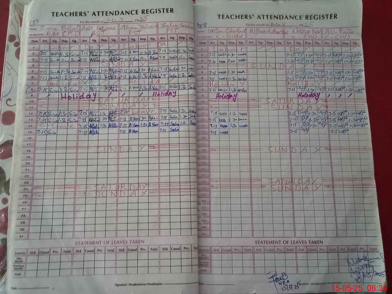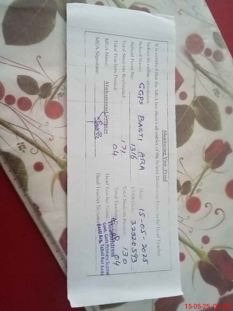 | Attendance Register | Head Teacher | MEA with School | Visit Proof |