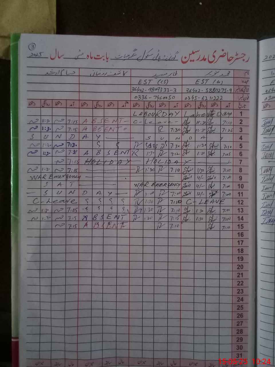 | 36**** | Ka**** Ra**** | 3 | 1 | 0 | 0 | 0 | 0 | 0 | 0 | 0 | 0 | 0 | Absent (Un-Authorized) |