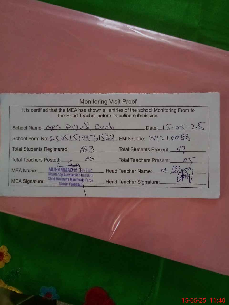 | EMIS Code: 39210088 | Name of School: GES FAZAL GARH P.O BOYLE GANJ | |||