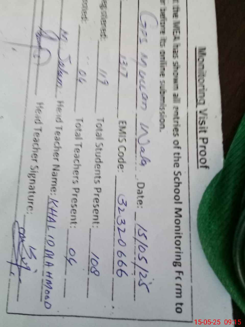 | EMIS Code: 32320666 | Name of School: GPS MULLAN WALA | |||