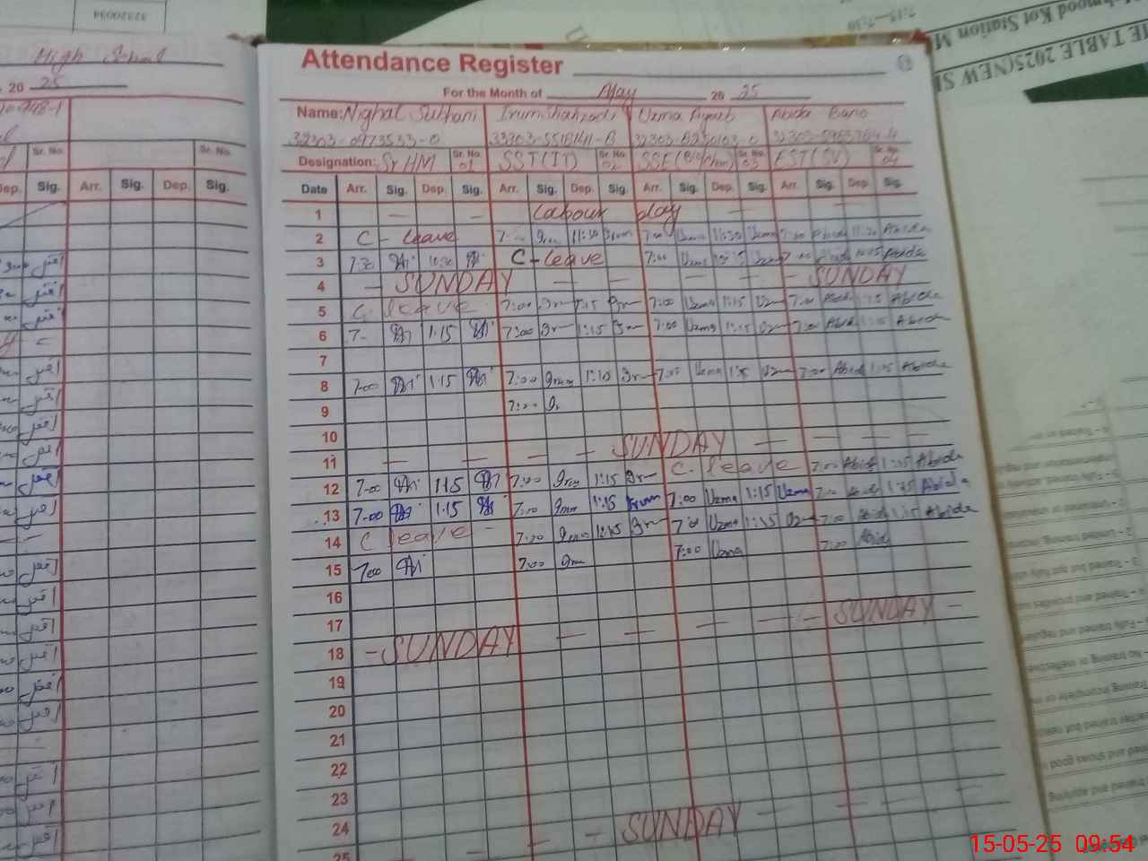 | 32**** | Az**** Bi**** | 1 | 1 | 0 | 0 | 0 | 0 | 0 | 0 | 0 | 0 | 0 | Exam Duty |