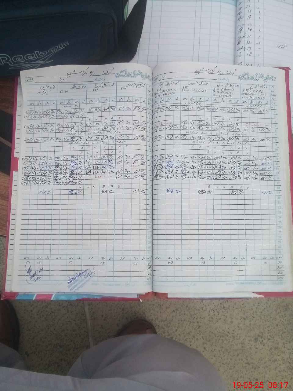 | CNIC | Full Name | Designation | R/C | Absence during last cal. month |