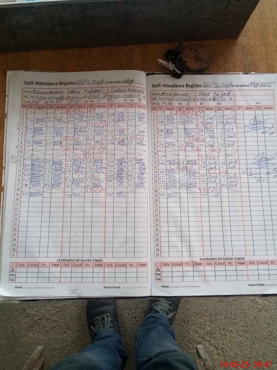 | CNIC | Full Name | Designation | R/C | Absence during last cal. month |