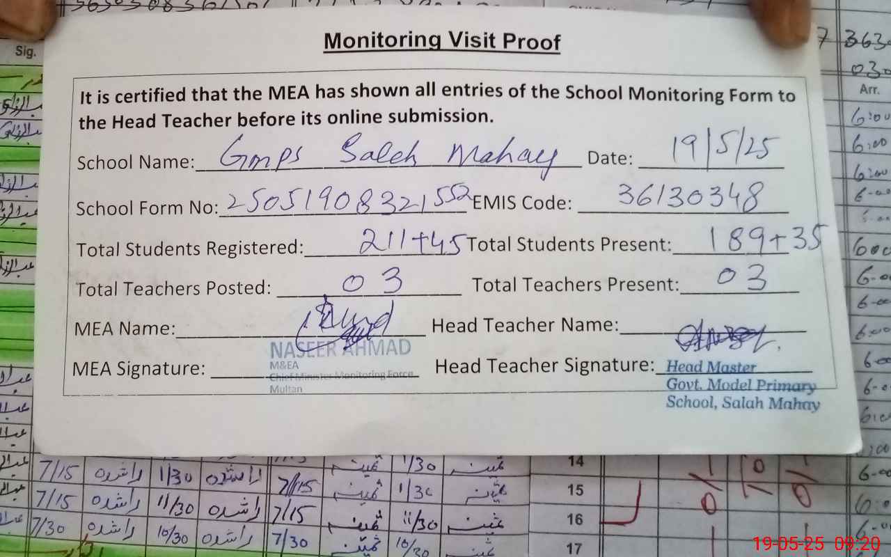 | EMIS Code: 36130348 | Name of School: GMPS SALEH MEHAY POST BOX NAWAB PUR | |||