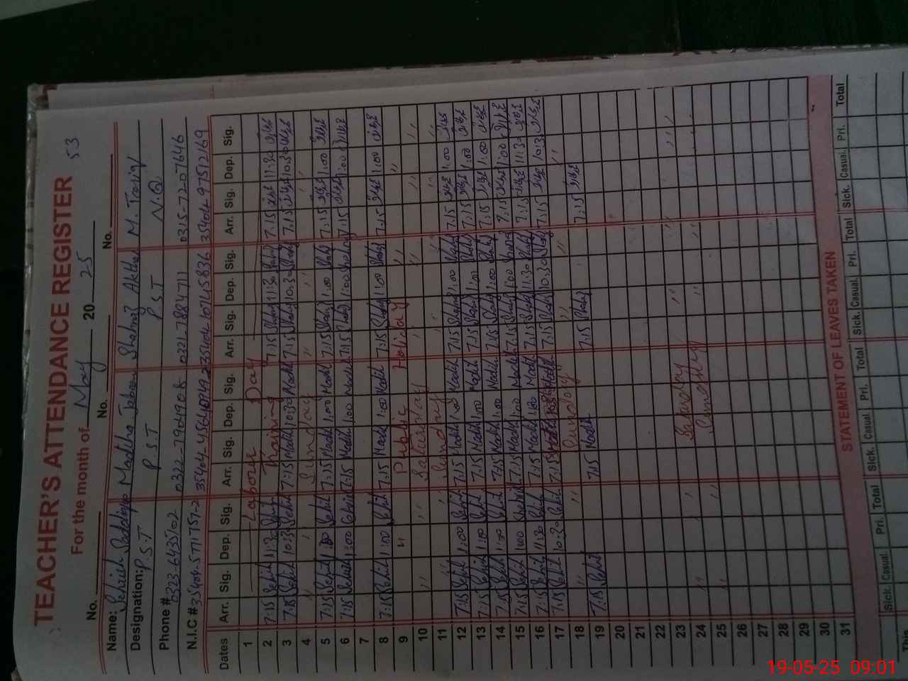 | Name: Se**** Sa**** Designation: (School Headmaster's/Headmistress's) PST Phone/Cell Number: 03**** |