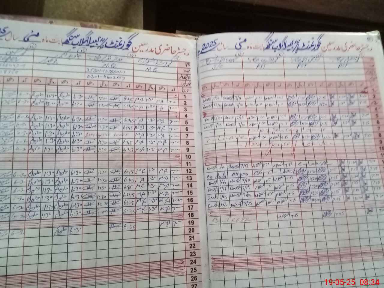 | CNIC | Full Name | Designation | R/C | Absence During Last Calender Month |