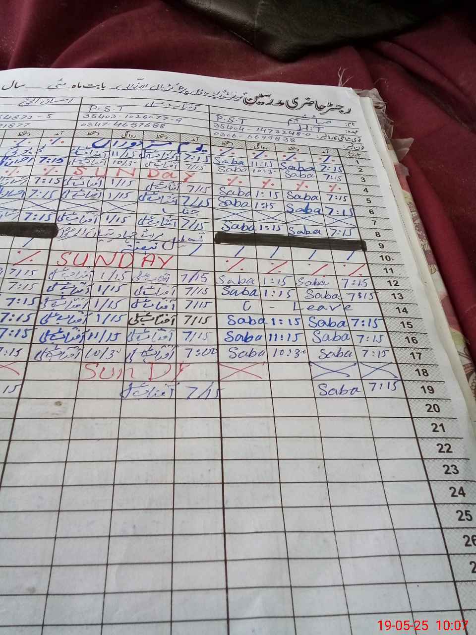 | Leave | Duty | Absent | Maternity | Medical | Ex- Pak |