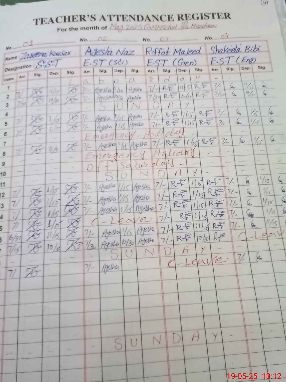 | CNIC | Full Name | Designation | R/C | Absence During Last Calender Month |