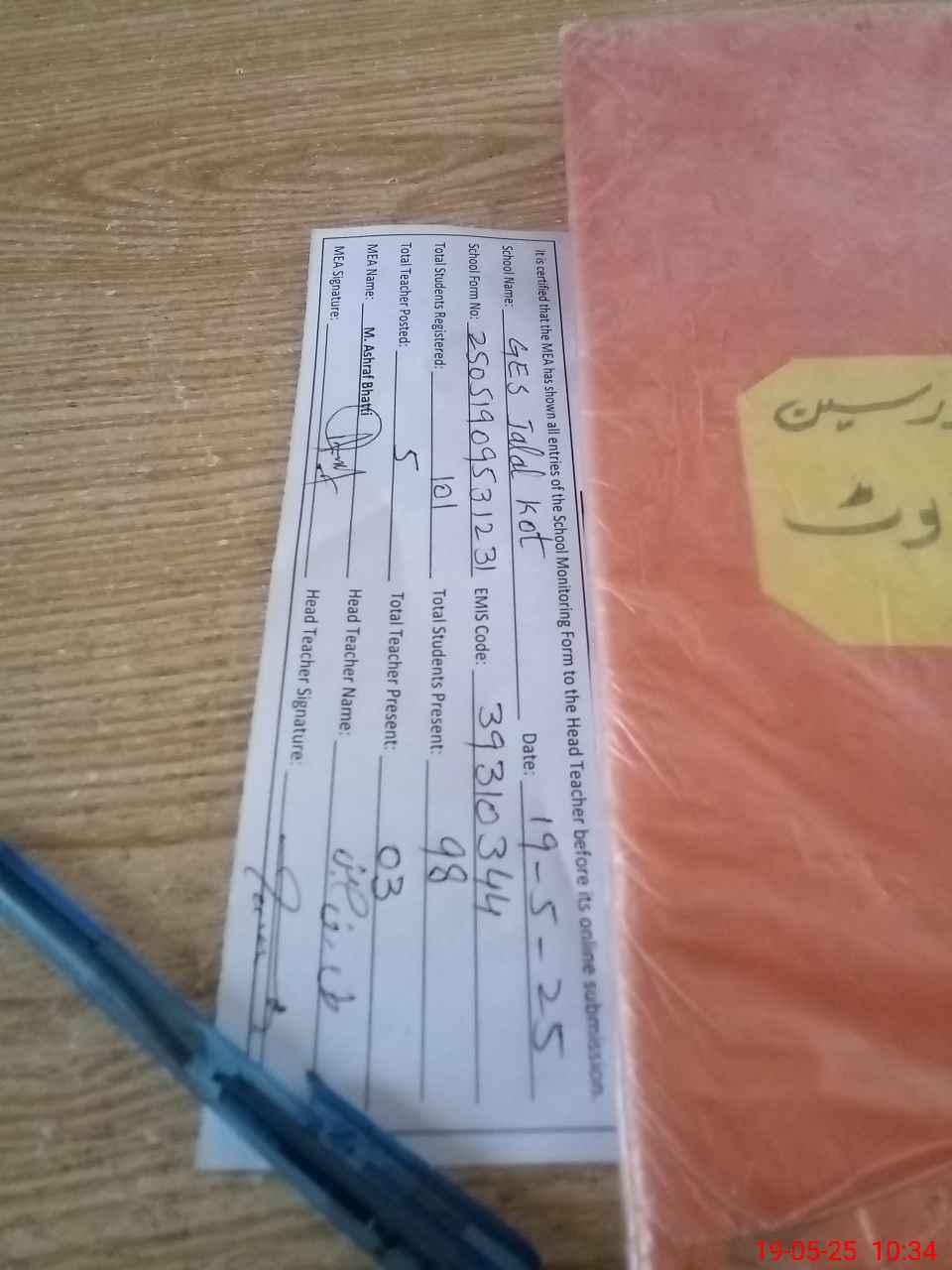 | Attendance Register | Head Teacher | MEA with School | Visit Proof |