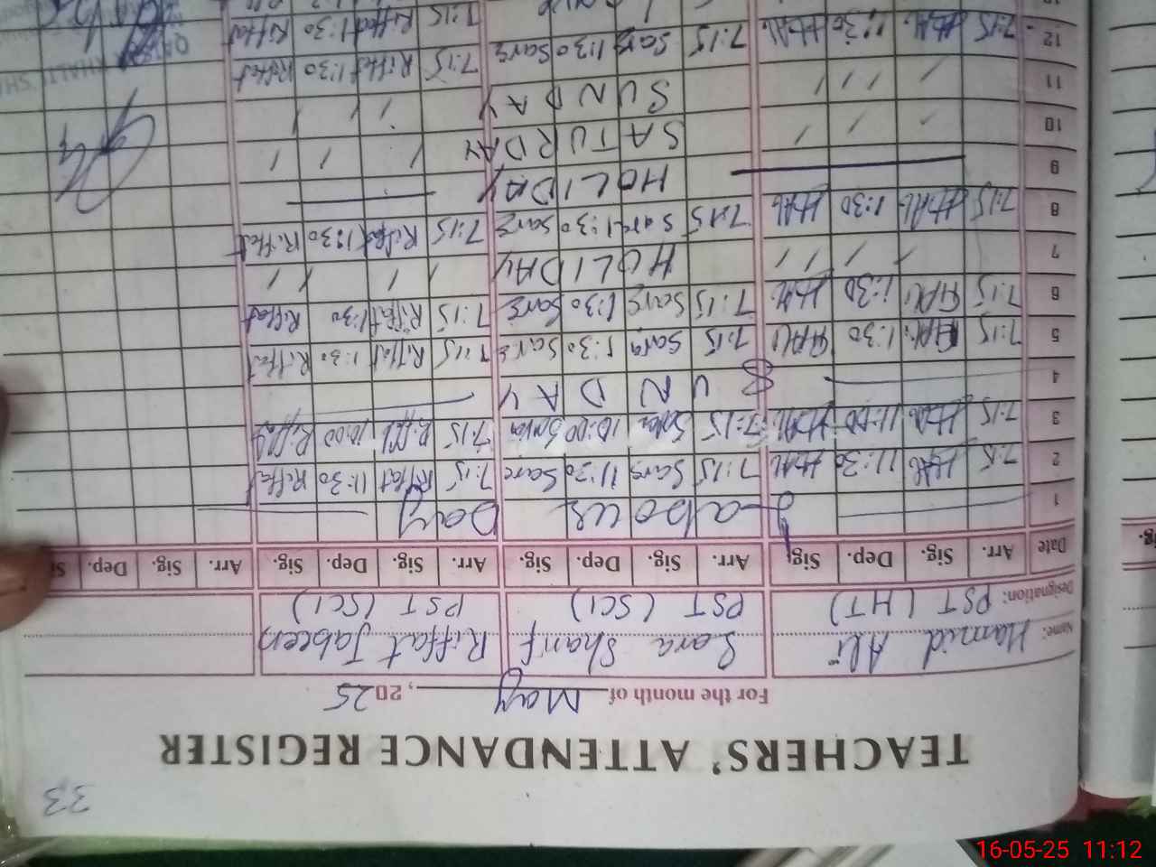 | Name: HA**** AL**** Designation: (School Headmaster's/Headmistress's) PST Phone/Cell Number: 03**** |