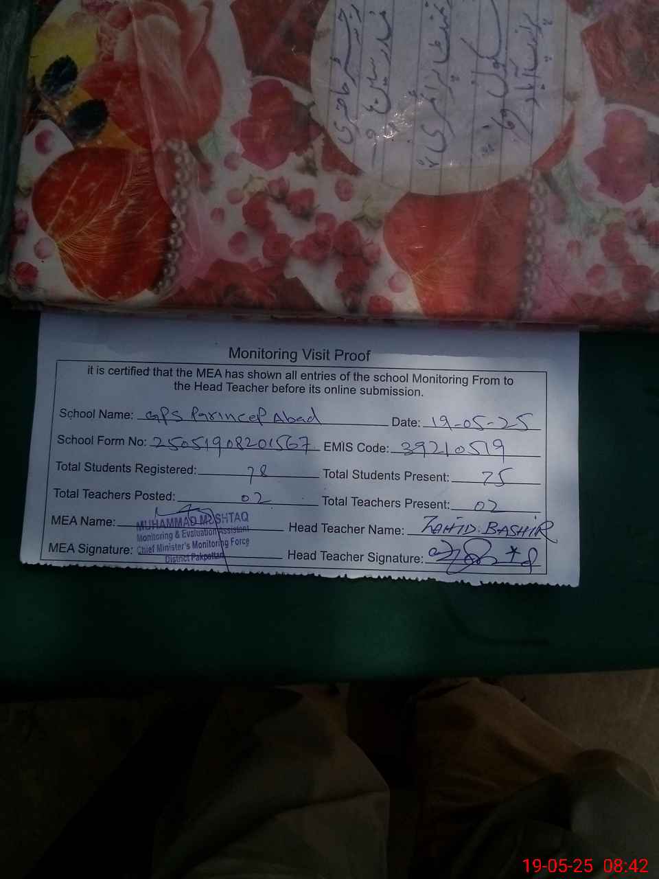 | Certified that this School was Inspected by the Undersigned MEA/DMO Today and the Information Stated Above is as Per Record. | |||||
