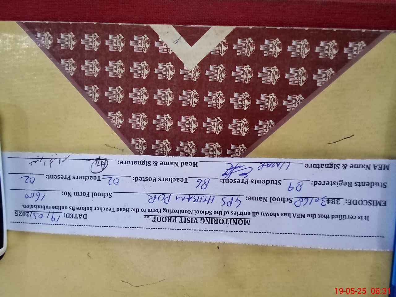 | Attendance Register | Head Teacher | MEA with School | Visit Proof |