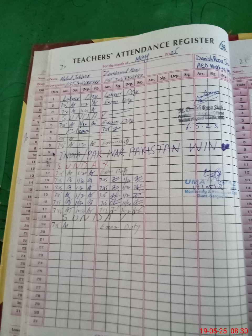 | 38**** | Mu**** Ze**** UlHa**** Aw**** | PST | Regular | 0 | 0 | 0 | 0 | 0 | 0 | 0 | 0 | 0 | Exam Duty |