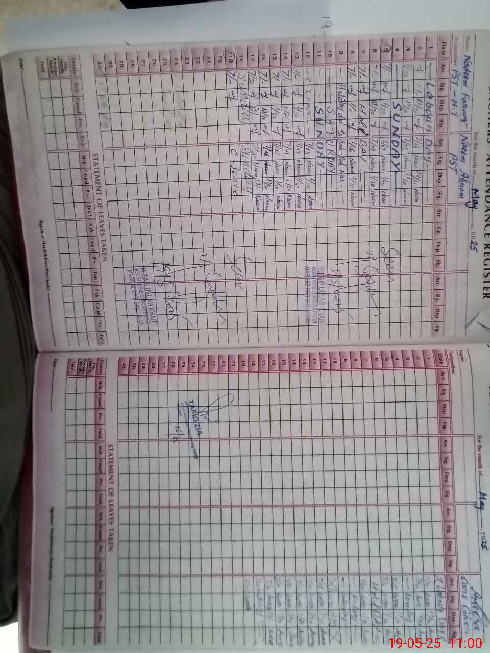 | CNIC | Full Name | Designation | R/C | Absence During Last Calender Month |