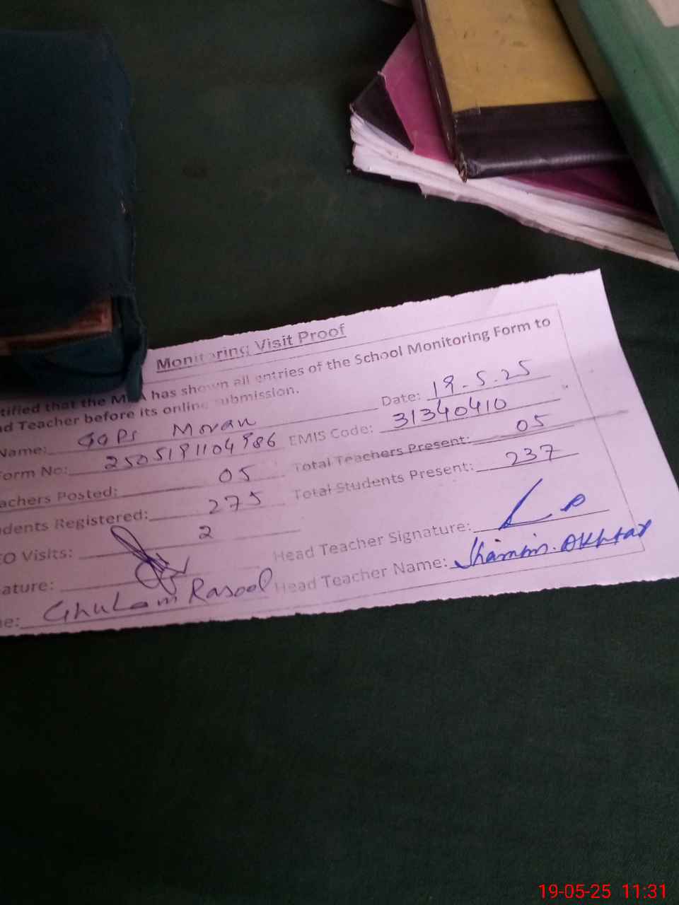 | EMIS Code: 31340410 | Name of School: GGPS MORAN | |||