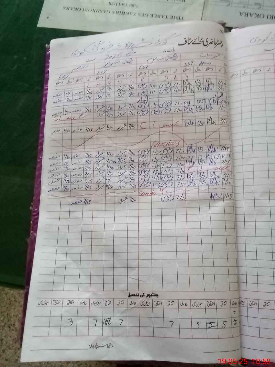 | CNIC | Full Name | Designation | R/C | Absence During Last Calender Month |