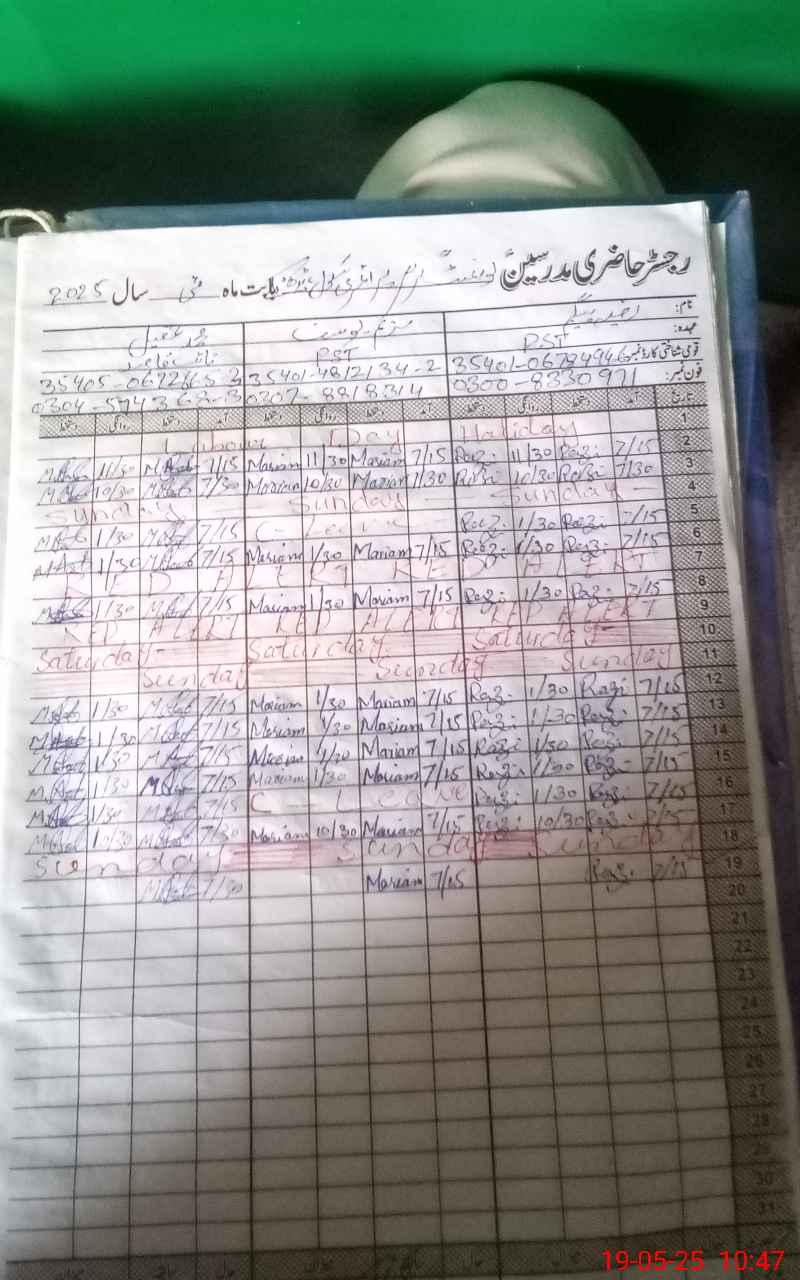 | Name: AQ**** BA**** Designation: (School Headmaster's/Headmistress's) PST Phone/Cell Number: 03**** |