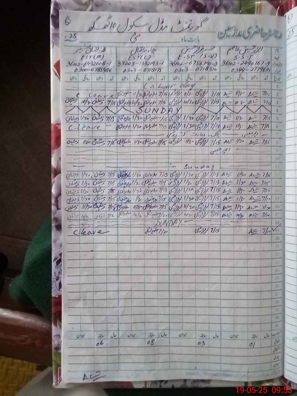 | CNIC | Full Name | Designation | R/C | Absence During Last Calender Month |