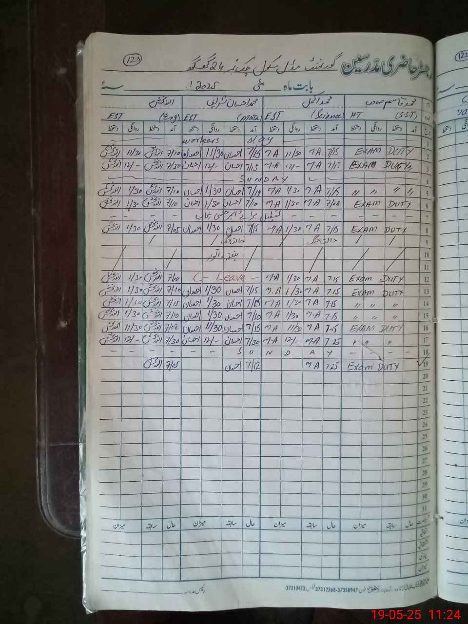 | 36**** | Mu**** Qa**** | Regular | 1 | 24 | 0 | 0 | 0 | 0 | 0 | 0 | 1 | Exam Duty | |
