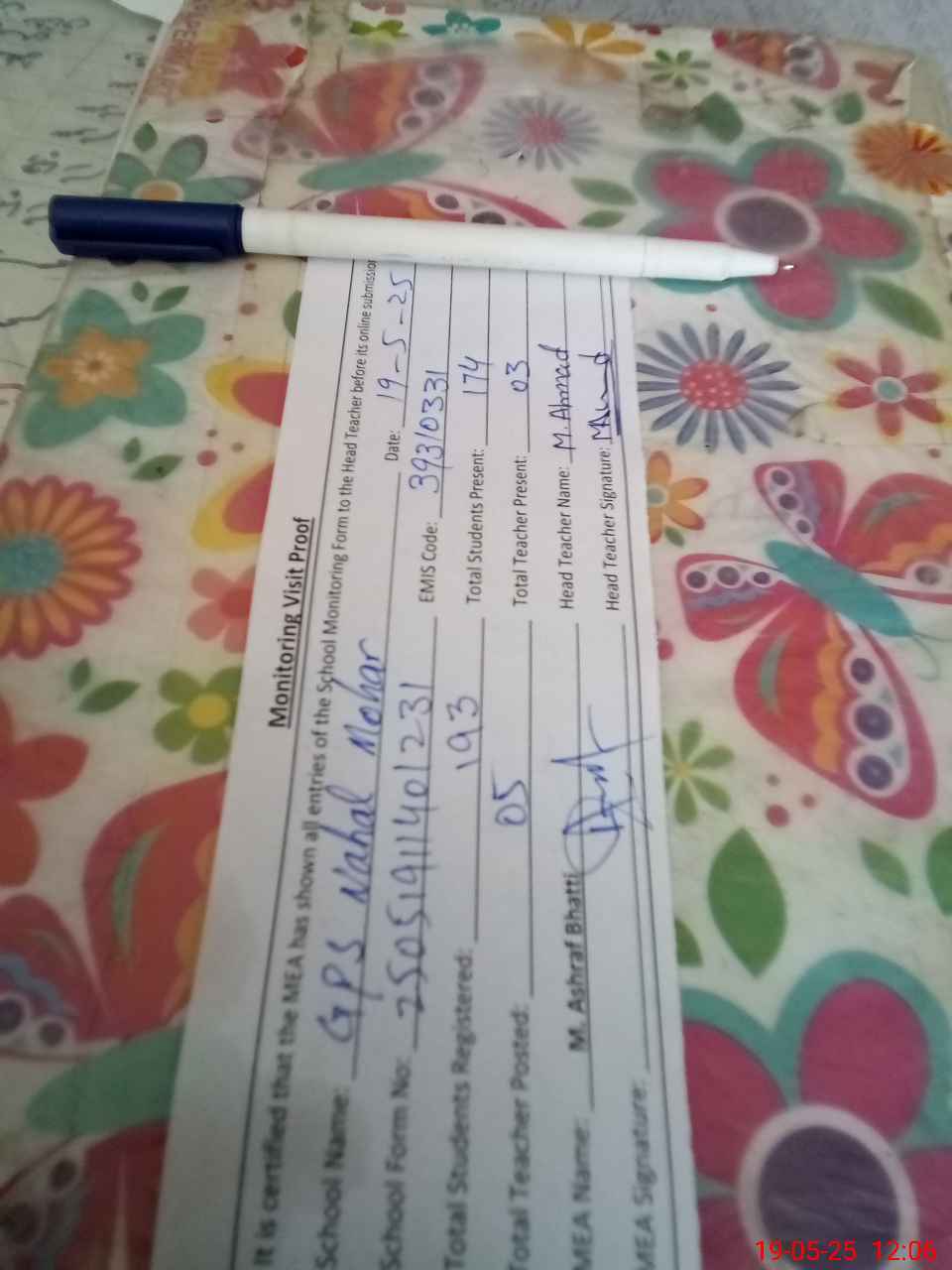 | Attendance Register | Head Teacher | MEA with School | Visit Proof |
