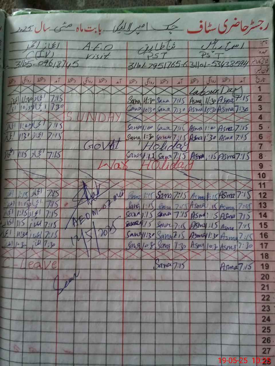 | Name: As**** Ri**** Designation: (School Headmaster's/Headmistress's) PST Phone/Cell Number: 03**** |