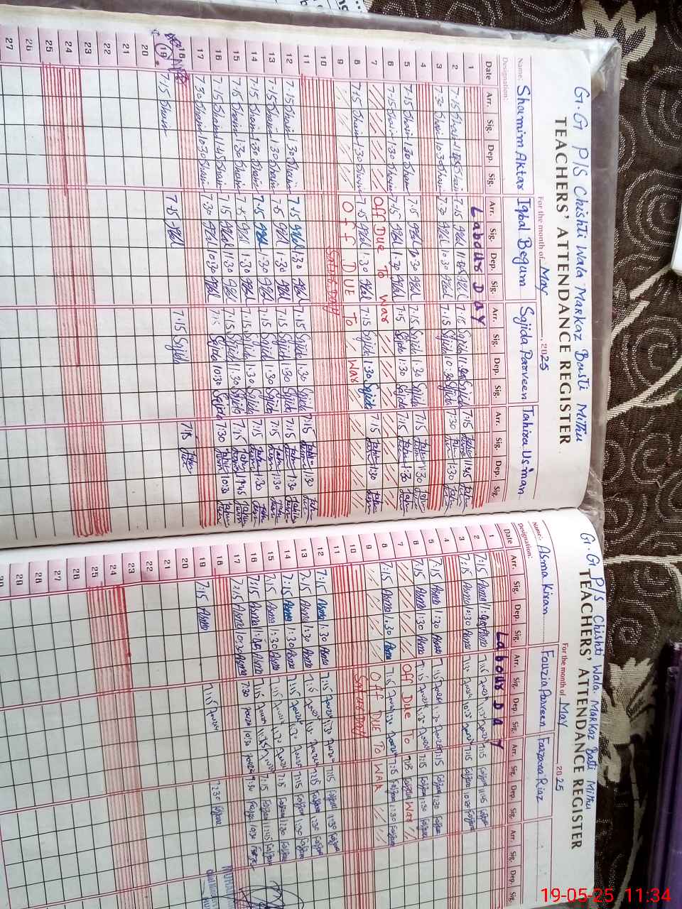 | CNIC | Full Name | Designation | R/C | Absence During Last Calender Month |
