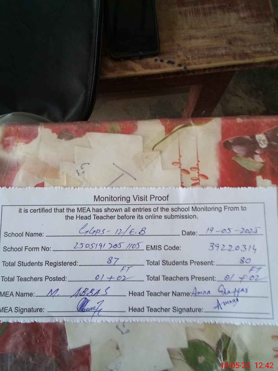| EMIS Code: 39220314 | Name of School: GGPS 12 EB | |||