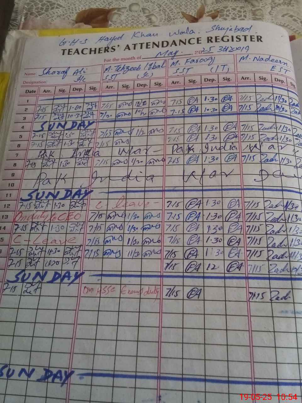 | 36**** | Mu**** Te**** Iq**** | SST | Regular | 0 | 0 | 0 | 0 | 0 | 0 | 0 | 0 | 0 | Exam Duty |