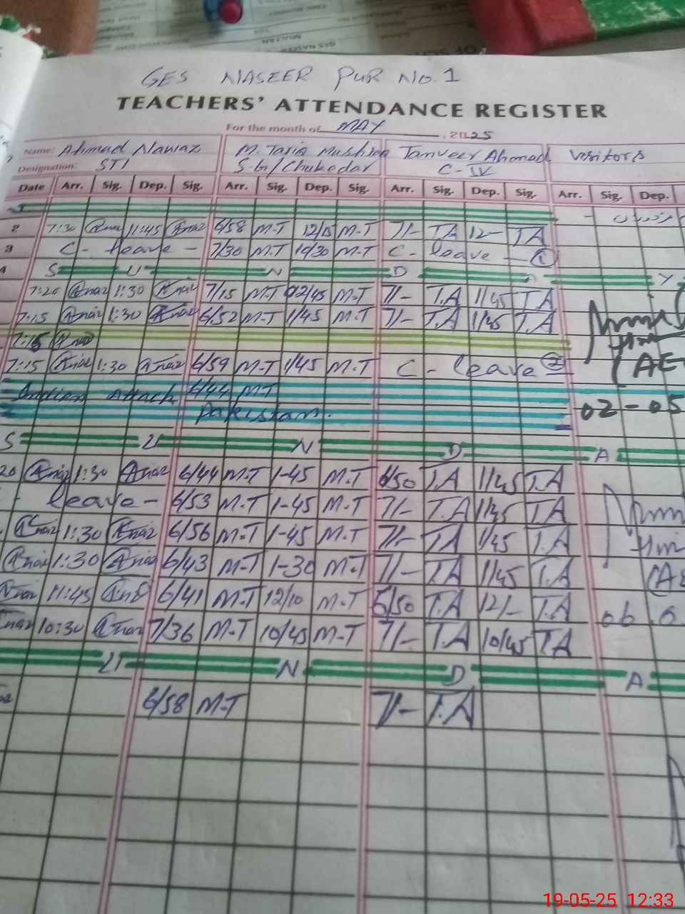 | CNIC | Full Name | Designation | R/C | Absence During Last Calender Month |