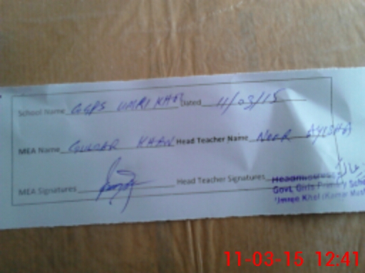 | Name: Kh**** No**** Designation: (School Headmaster's/Headmistress's) ESE Phone/Cell Number: 03**** |