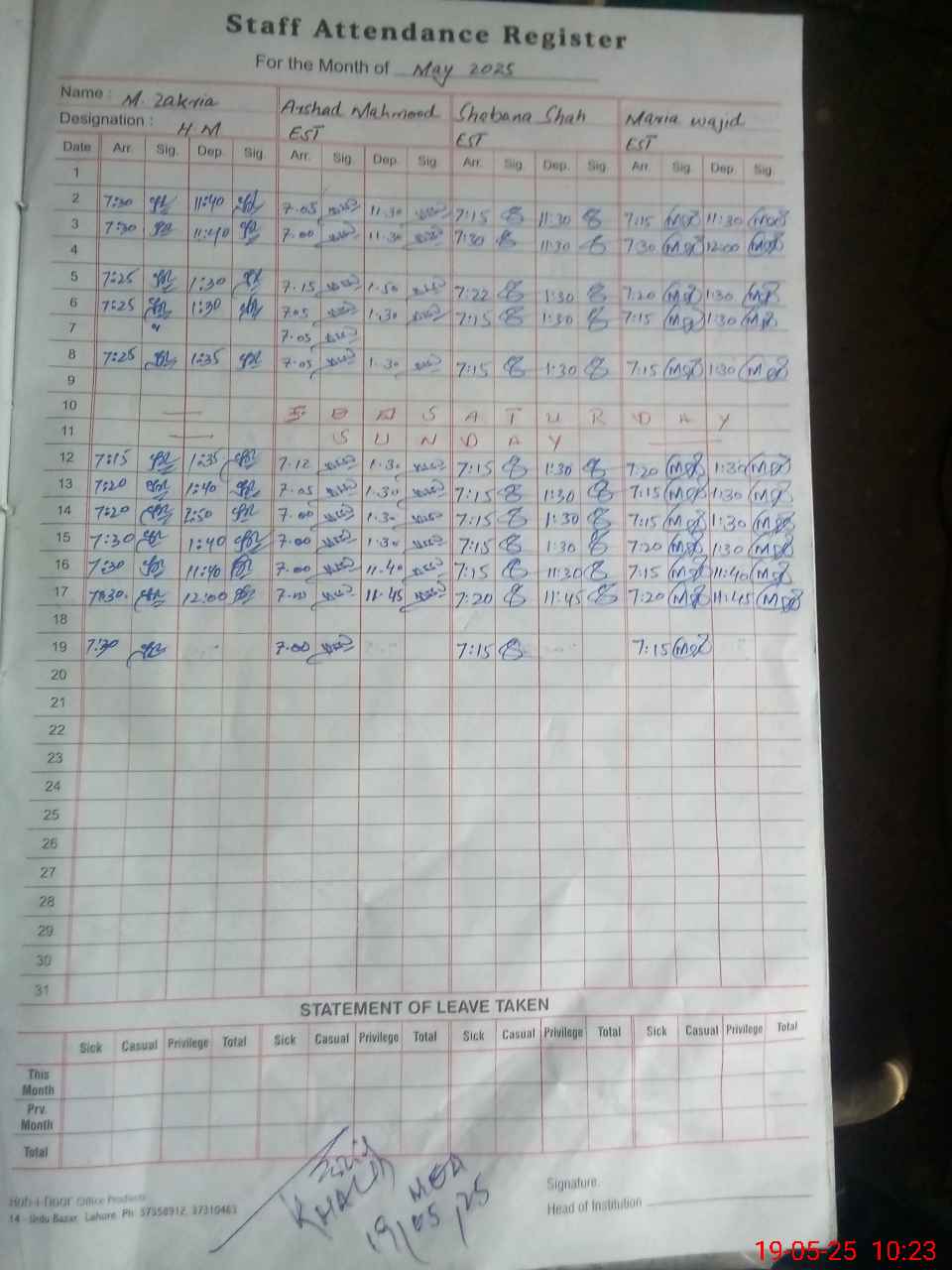 | Name: Fa**** Ta**** Designation: (School Headmaster's/Headmistress's) Headmaster Phone/Cell Number: 03**** |
