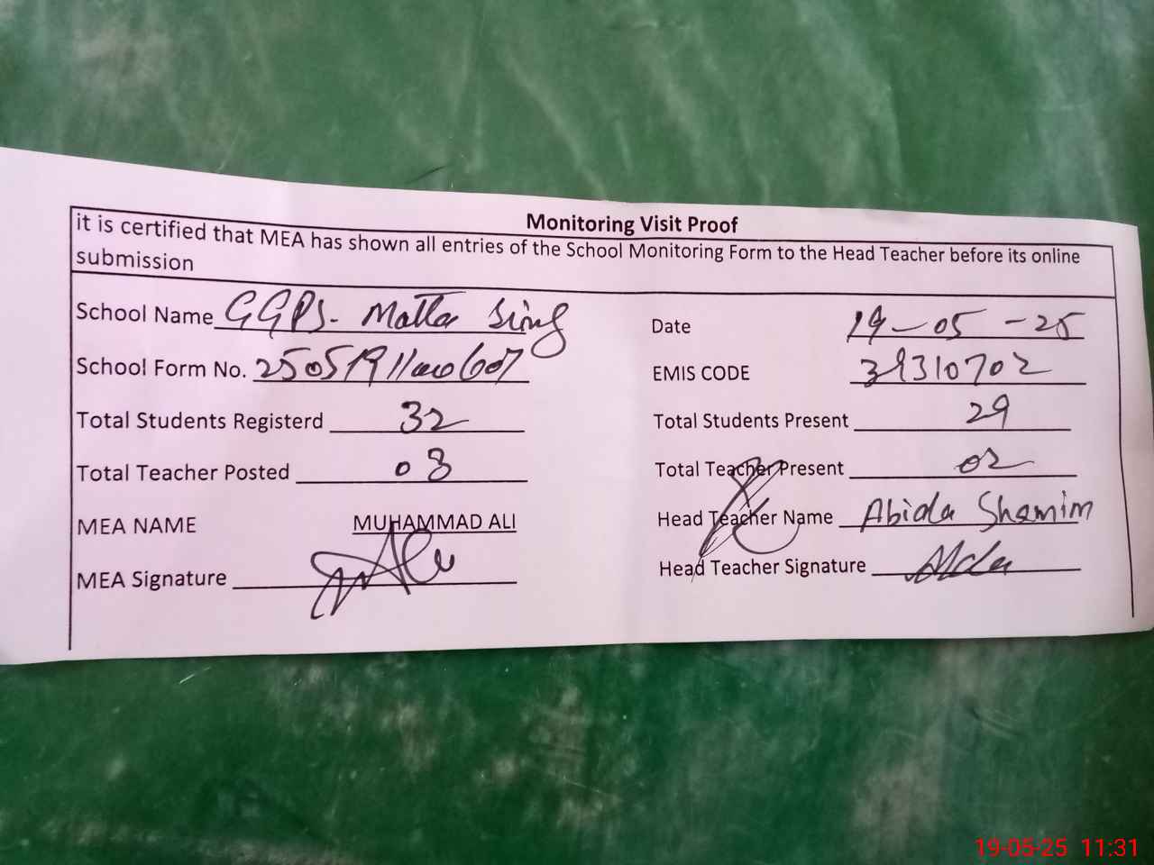 | EMIS Code: 39310702 | Name of School: GGPS MATA SINGH | |||