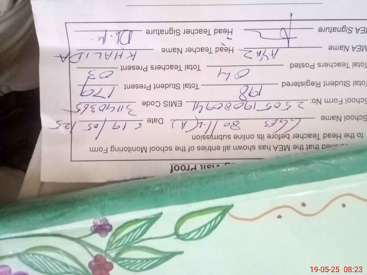| Attendance Register | Head Teacher | MEA with School | Visit Proof |