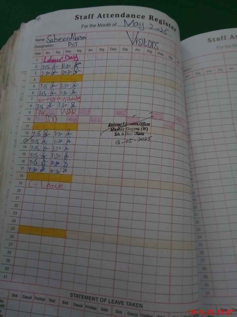 | 35**** | Sa**** Ak**** | PST | Regular | 1 | 3 | 0 | 0 | 0 | 0 | 0 | 0 | 1 | Casual |