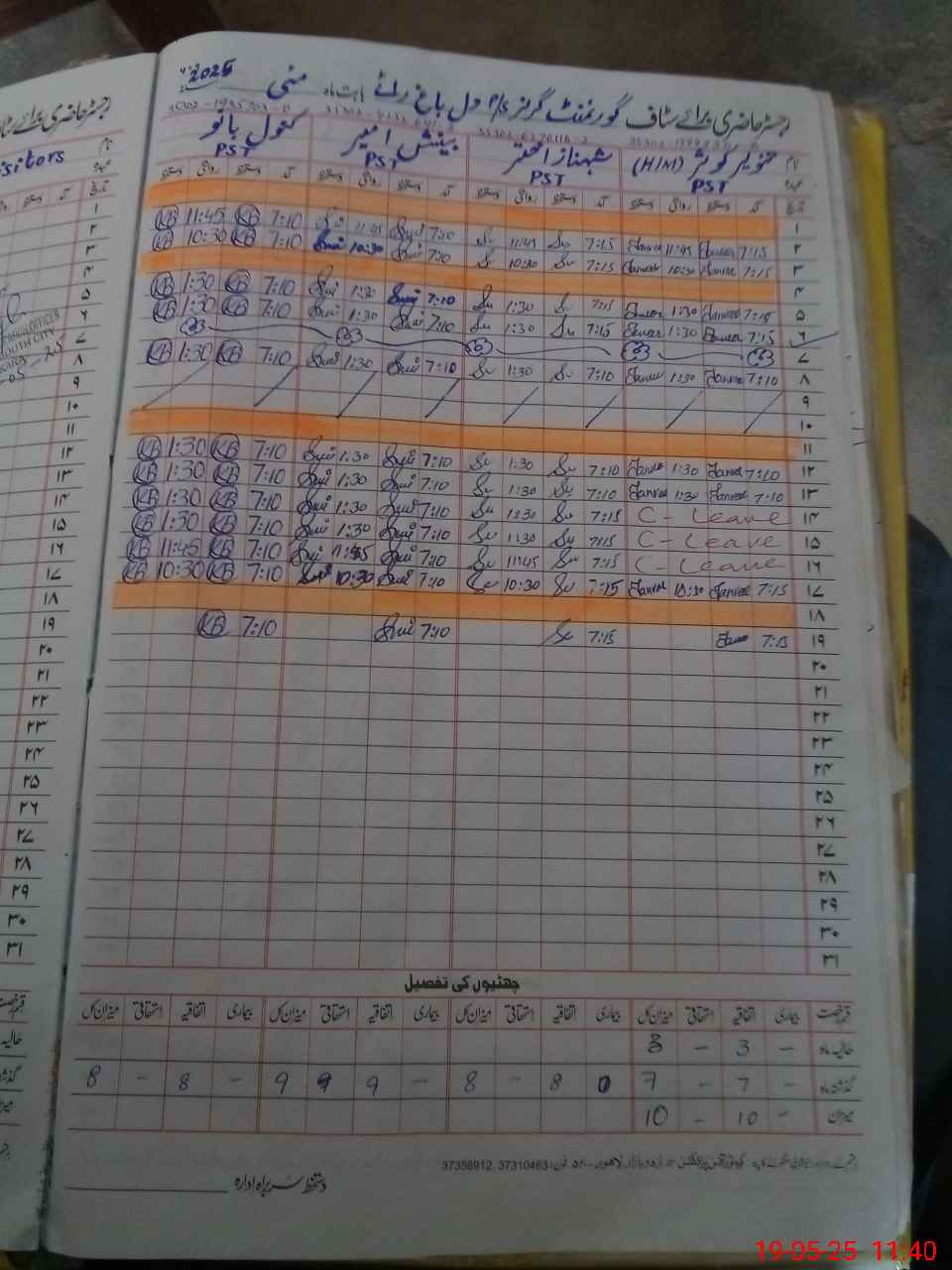 | Leave | Duty | Absent | Maternity | Medical | Ex- Pak |